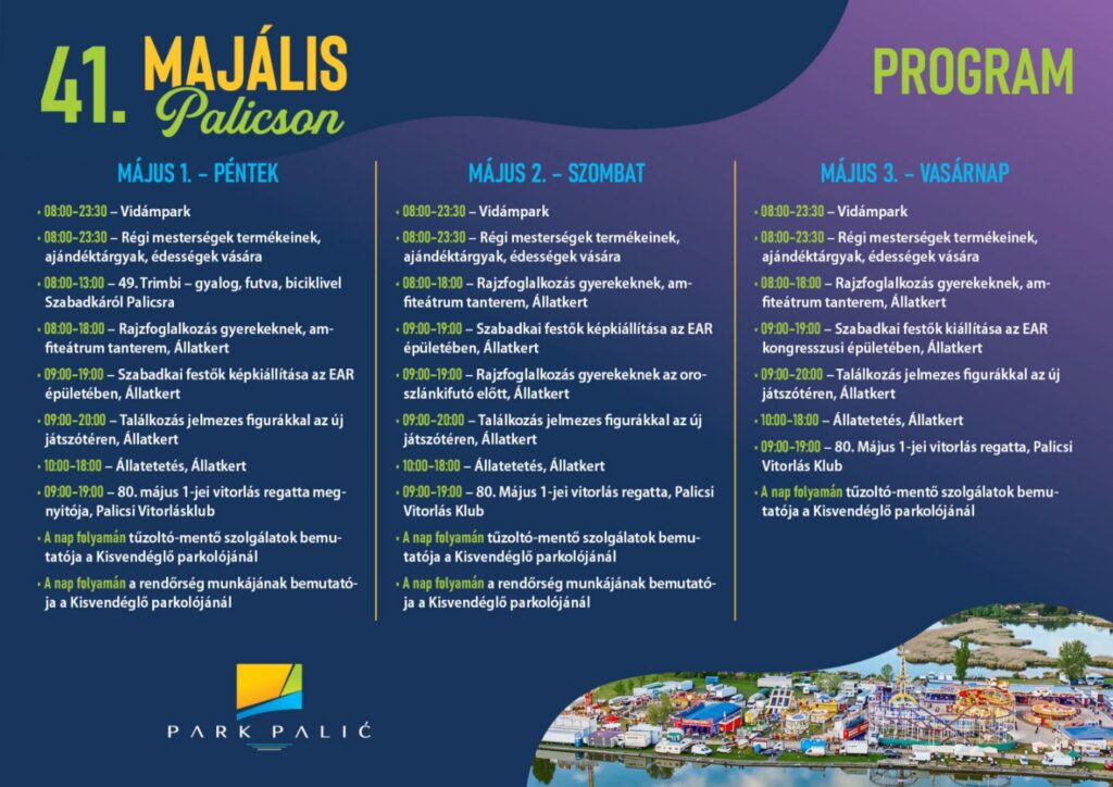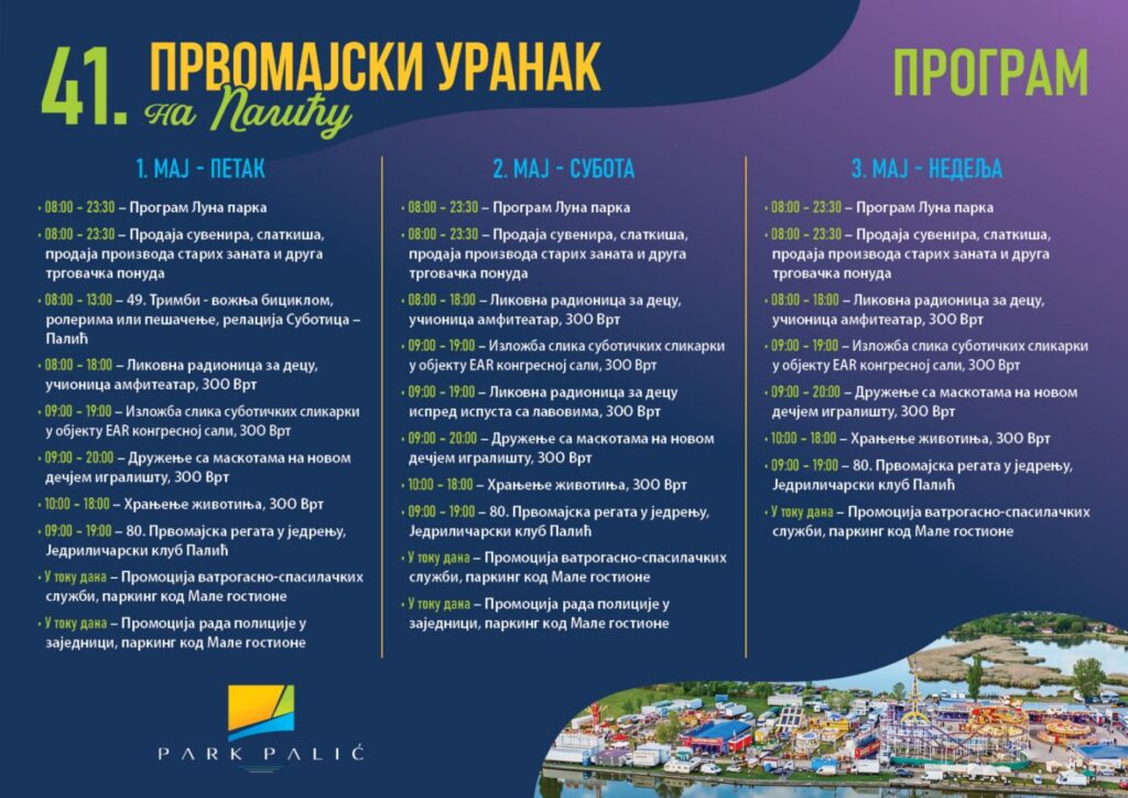 Pažljivo kreiran program Zoološkog vrta, Prvomajska jedriličarska regata, tradicionalni Trimbi ili jednostavno uživanje u prirodi, samo su dio zabavnog programa koji vas ove godine očekuje na Paliću!