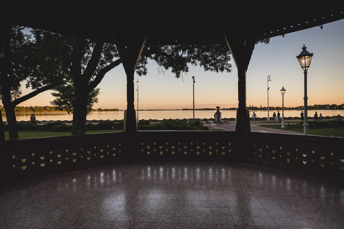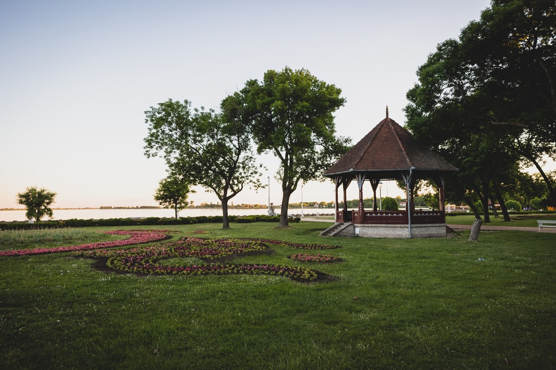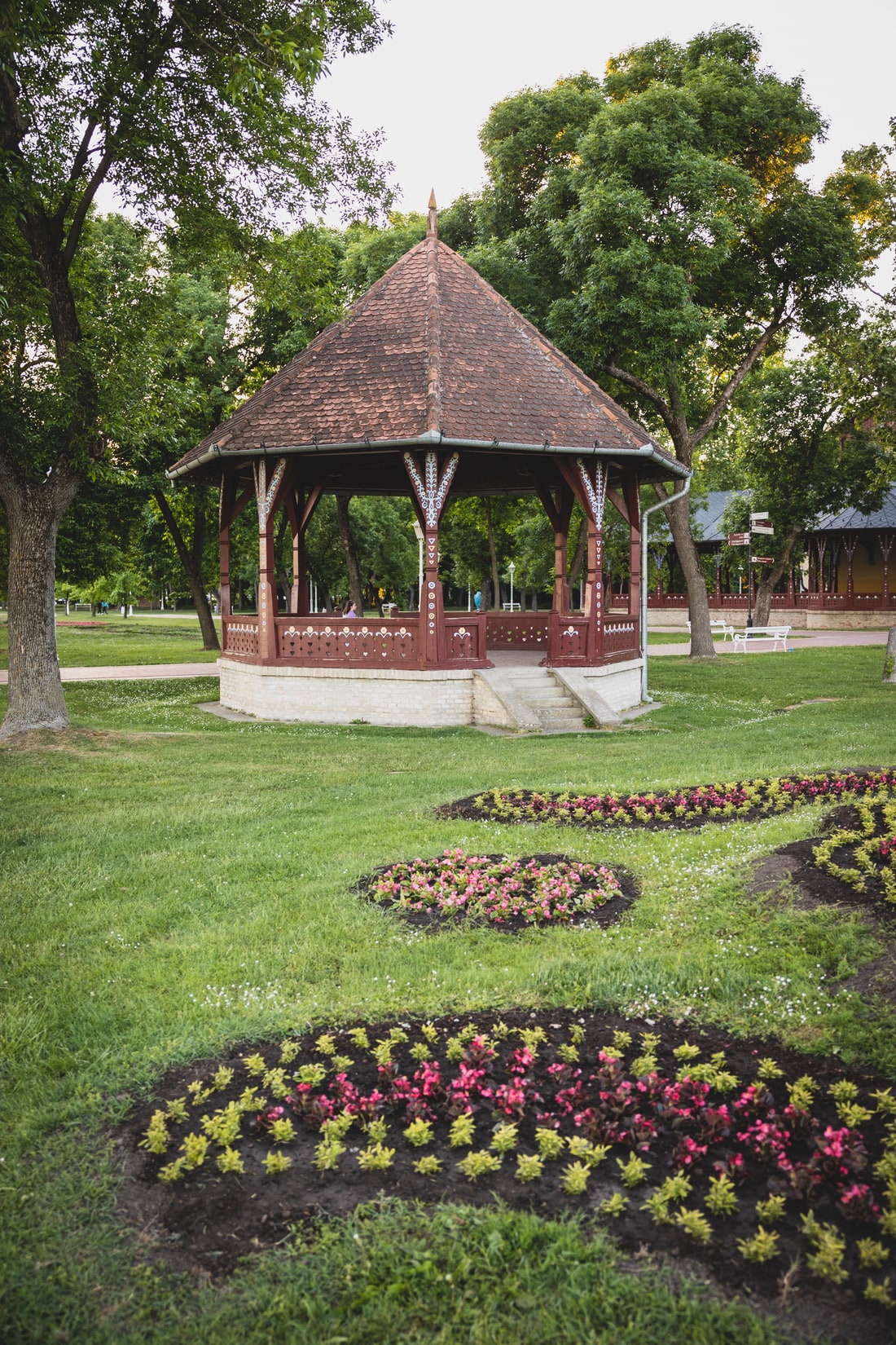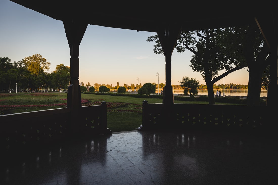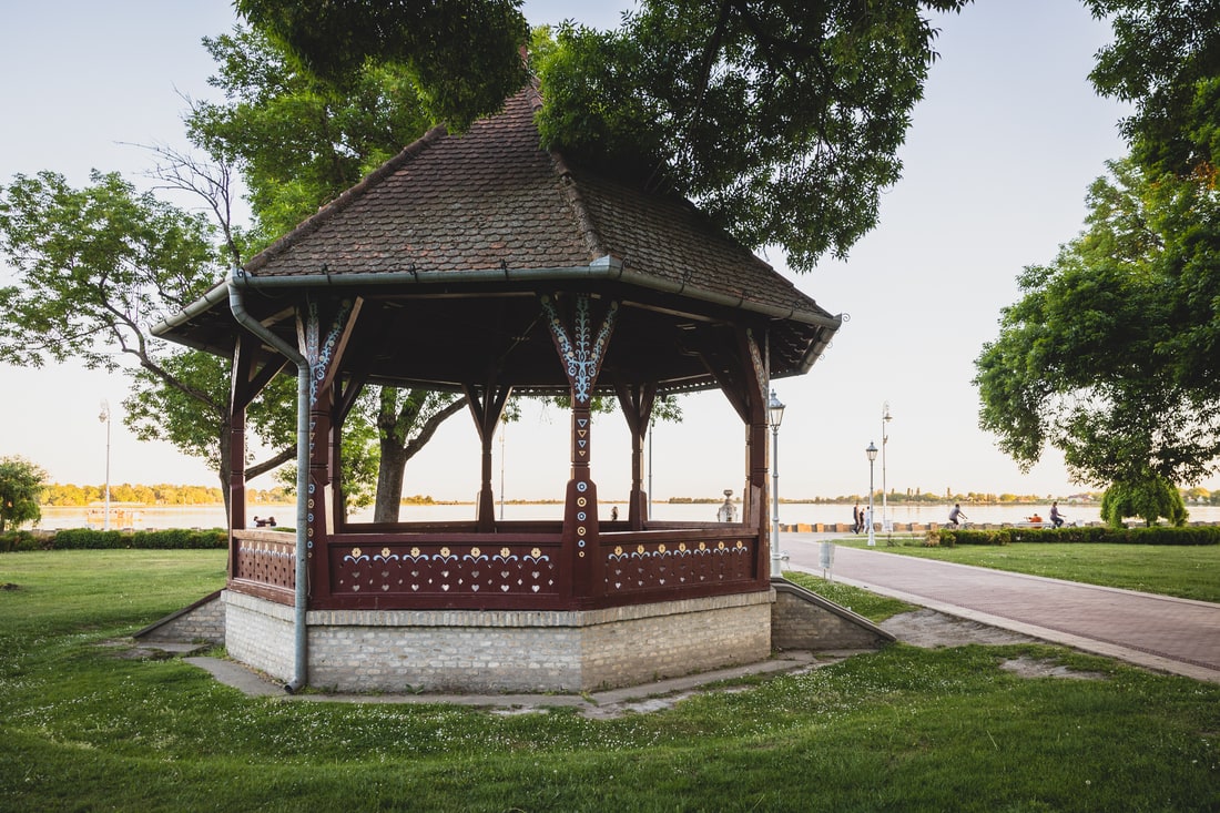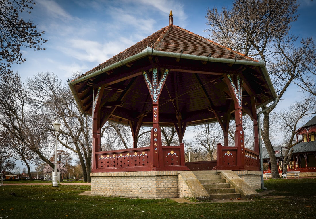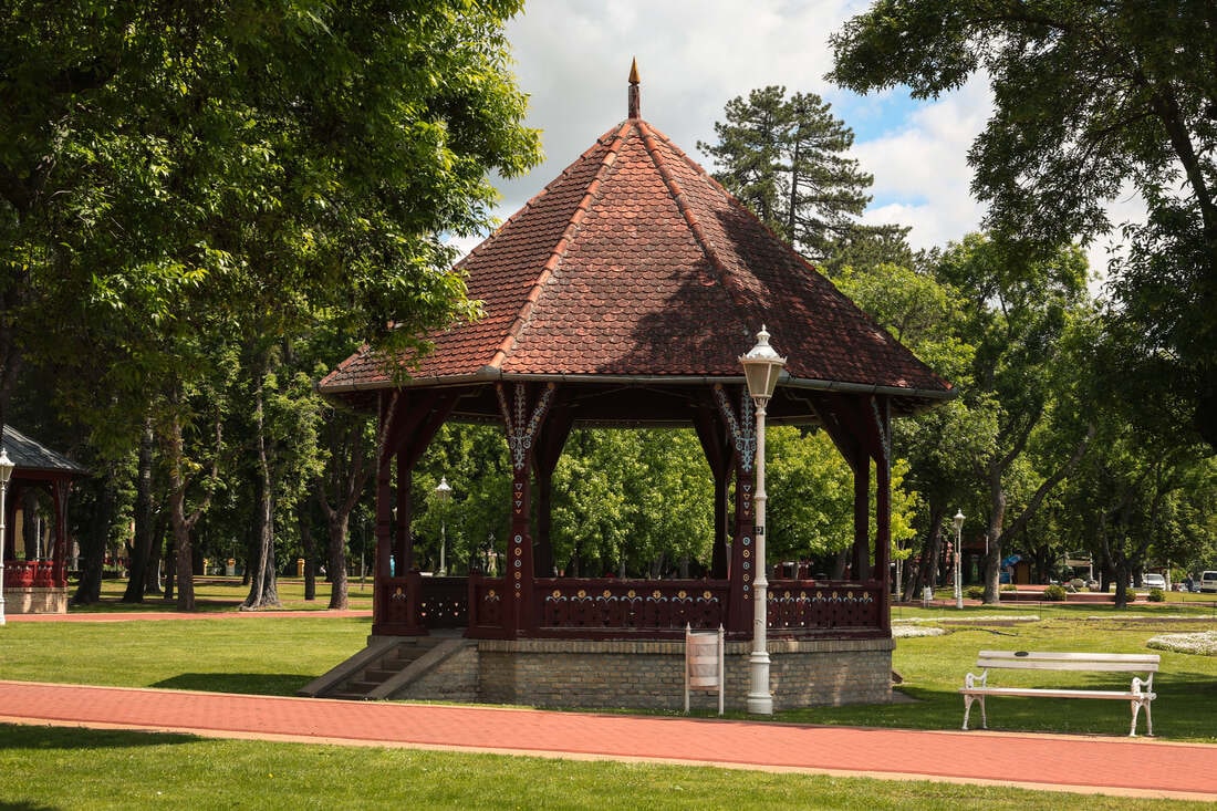 Muzički paviljon je izgrađen u stilu secesije 1910. godine, po projektu arhitekata Marcela Komora i Deže Jakaba, nalazi se neposredno ispred objekta Velike terase.